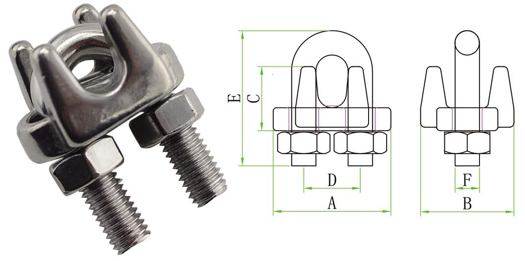 Clip de cuerda de cable de alambre de acero inoxidable Clip de cable de alambre JIS