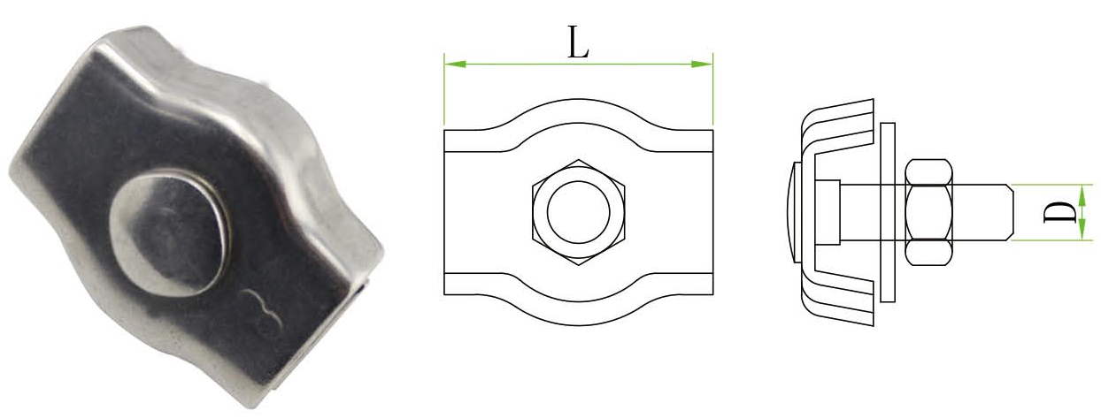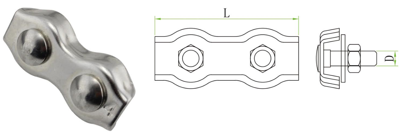 Clip de cuerda de alambre de acero inoxidable o ion simple y cable de cable dúplex