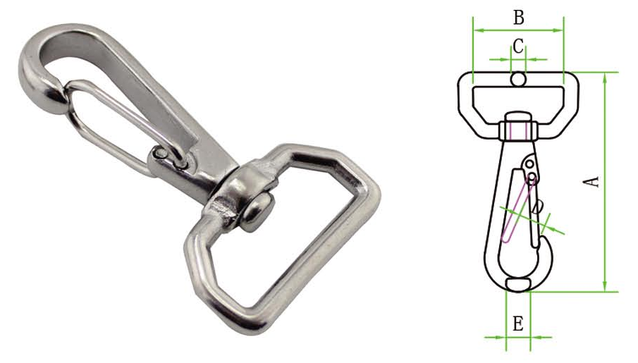 Gancho giratorio giratorio de acero inoxidable gancho de resorte giratorio cuadrado