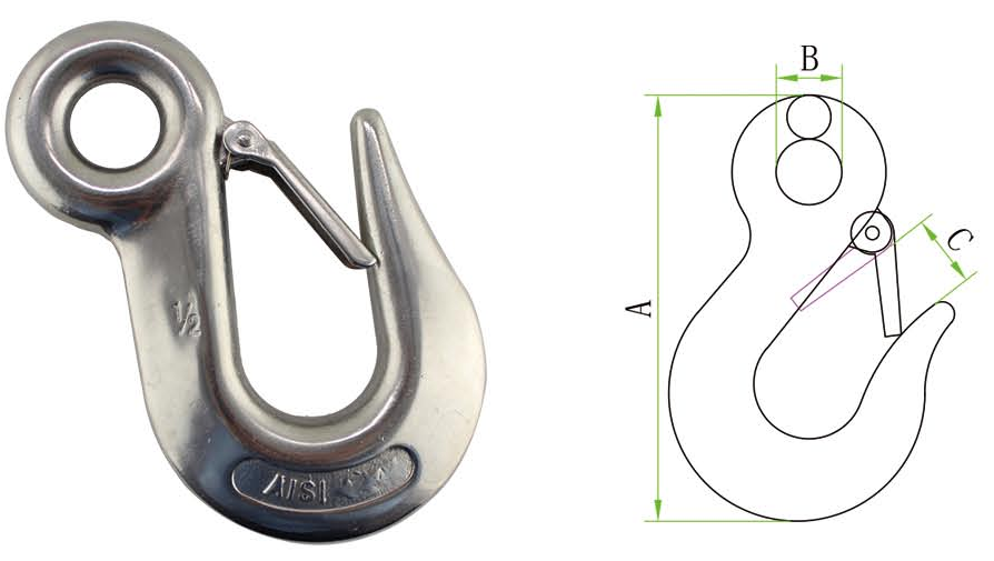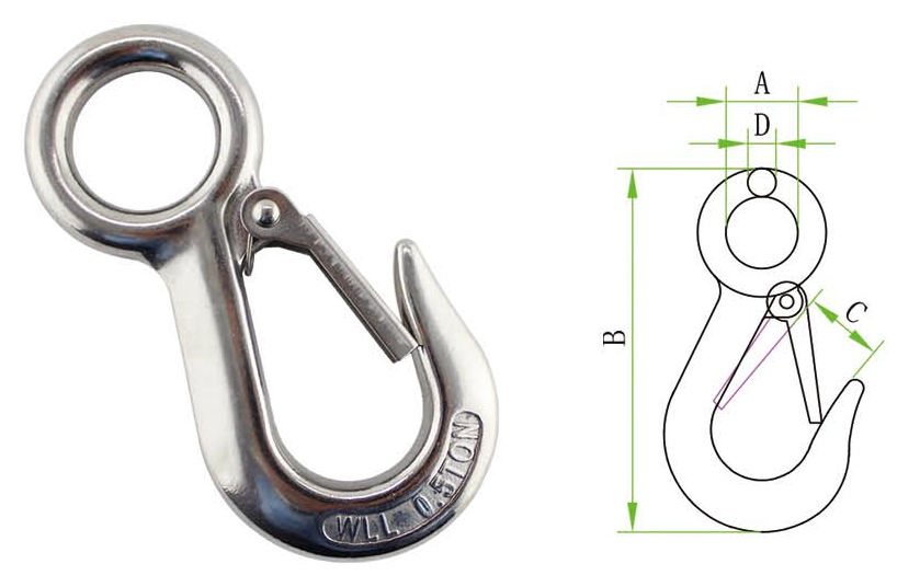 Gancho de deslizamiento de ojo de acero inoxidable gancho grande con pestillo