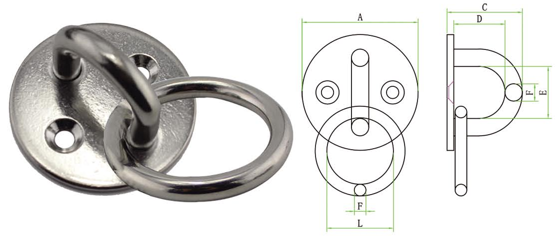 Placa de ojos Oval SS304 o SS316 Oval con anillo