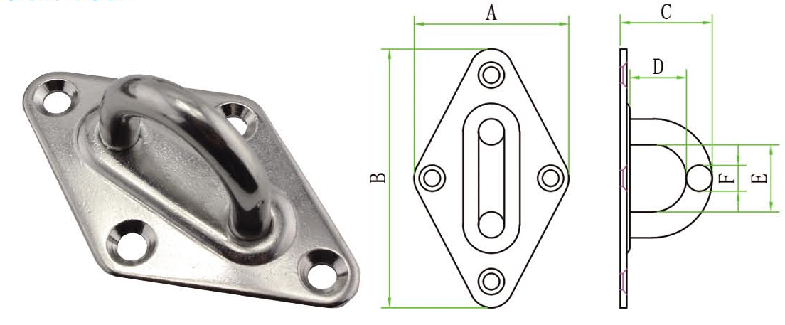 Placa de ojo de yate placa de ojo de acero inoxidable placa de ojo de diamante